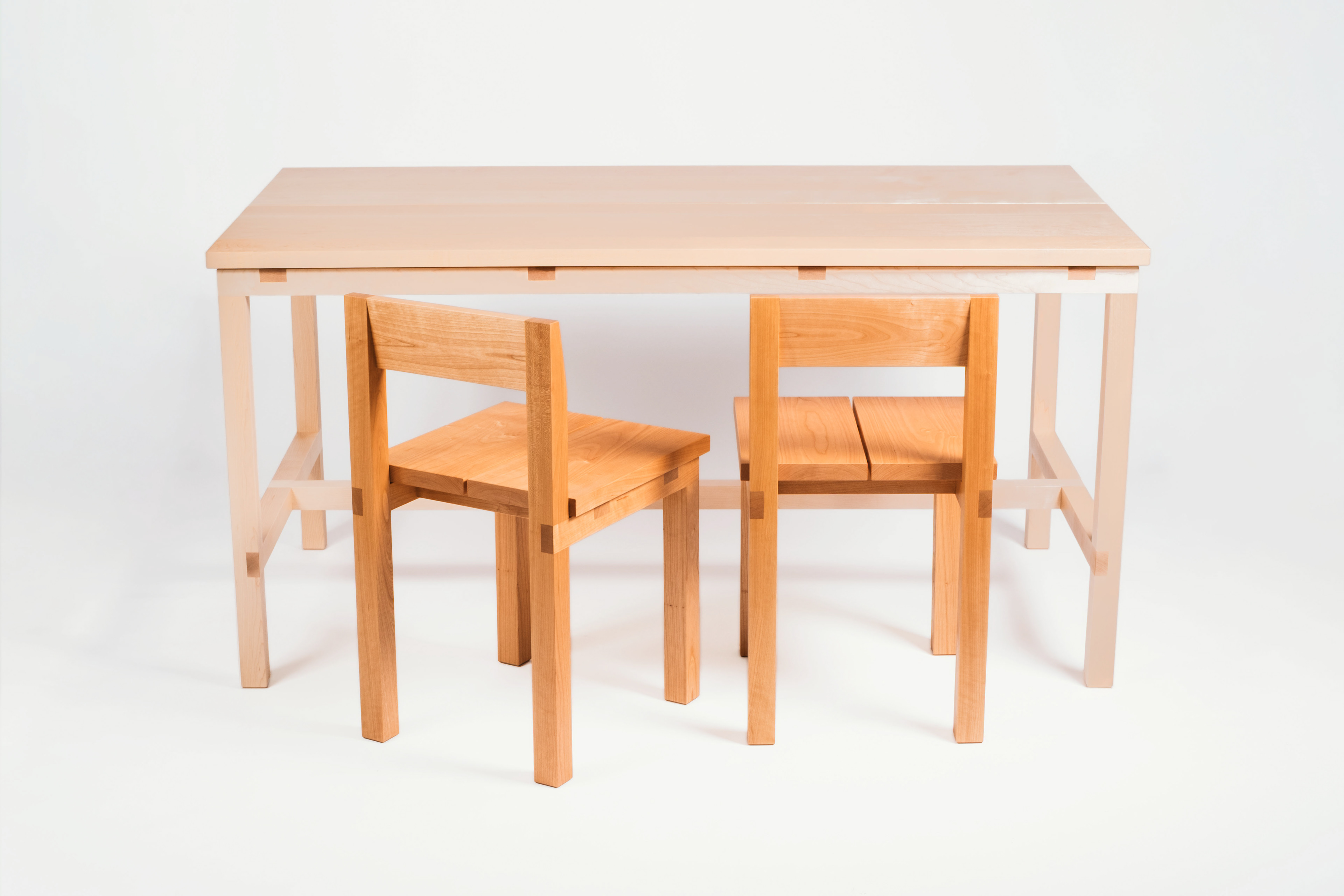 A four seat dining table. Custom sizes available. Shown in maple.